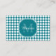 Trendy Teal and White Checked Monogrammed Name Business Card