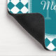 Trendy Teal and White Checked Monogrammed Name Mouse Mat