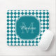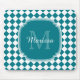 A trendy teal and white geometric diamond checked tile pattern monogram mousepad. Personalise this stylish design by adding your name and monogrammed initial.