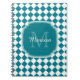 Trendy Teal and White Checked Monogrammed Name Notebook