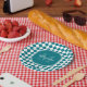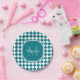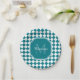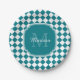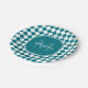 Trendy Teal and White Checked Monogrammed Name Paper Plate