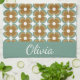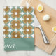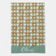 Trendy Teal Caramel Retro Groovy Flowers Seamless Tea Towel