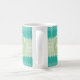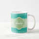 A trendy bright teal and lacy light green striped knit pattern mug. Personalise this stylish knitted design by adding your name and monogram. This is part of the Arcadia Knit Pattern With Nile Green Monogram Collection. Flat printed image, NOT made with knitted yarn or lace.