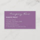 Monogrammed in huge lettering that fills the business card top to bottom and overlays the first name initial over the last name initial with a slight variance of colour, name and position title at a 90 degree angle on right edge of card - this has a textured overlay that will texture your (LAST NAME INITIAL ONLY ) monogram and background colour but leave the First Name initial , name and title clean - the back of the card leaves all of the text clean- CHANGE COLOR of the background by choosing Customise, use the edit drop down box for background colour - the one I have chosen here is a medium plum - the textured appearance will remain. (Do Not forget to change the background colour to match on the back of the card) NOTE: THIS card is NOT truly Textured, it is an artistically designed image to make it appear textured.