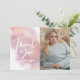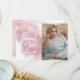 Send your thanks on this personalised, trendy photo card. It features watercolor shades of pink, coral and mauve and your favourite photo.<a href='http://www.freepik.com/free-vector/thank-you-cards-painted-with-watercolors_917409.htm'>Designed by Freepik</a>. <br/><br/>The card is easy to customise with your wording, font, font colour, paper shape options and choice of six paper types.<br/><br/>Not exactly what you're looking for? All our products can be custom designed to meet your needs at no extra charge.<br/><br/>Simply contact us at askcottonlamb@gmail.com<br/><br/>Coordinating products available: Just ask us!