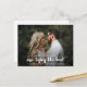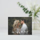 Modern and simple photo save the date postcard featuring a white handwritten script on the front and a template postcard on the back.