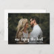 Add your favourite full bleed horizontal orientated photo and customise the white text overlay with your names, wedding date and location.