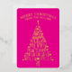 Trendy Tree Non-Photo Minimalist Hot Pink Gold Foil Holiday Card