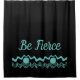 Wake up every morning and remind yourself to BE FIERCE with this shower curtain with a bold and daring design. Teal coloured lettering with an abstract graphic design on a black background makes for a striking addition to your bathroom.