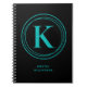 Simple spiral bound notebook is personalised with your monogram initial surrounded by turquoise circles and your full name below. Ideal for yourself, for school, book club or a gift for any occasion. MORE colours in our store.