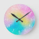 Trendy unicorn rainbow glitter holographic pattern round clock