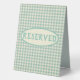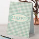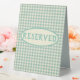 Trendy vintage blue chequerboard patterned custom table tent signs are perfect for a variety of party themes. Be sure to check out matching plates and napkins, and other party supplies. "Reserved" text is customisable to meet your event needs.