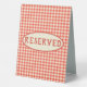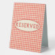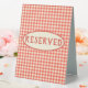 Trendy red vintage chequerboard patterned custom table tent signs are perfect for a variety of party themes. Be sure to check out matching plates and napkins, and other party supplies. "Reserved" text is customisable to meet your event needs.