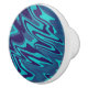 Trendy vivid blue turquoise Abstract wavy pattern Ceramic Knob