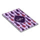 Artsy, stylish watercolor inspired tropical pineapple pattern in shades of pink and purple. A purple quatrefoil label frame is on top of the pattern and features a customisable name + initial letter monogram.