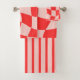 Trendy wavy chequerboard Pink Red Cute pattern Bath Towel Set
