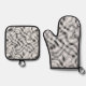 Trendy White Grey Black Retro Wavy Stripes Pattern Oven Mitt & Pot Holder Set