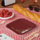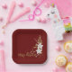 This paper plate features white poinsettias and red berries highlighted with white branches on a burgundy red background . Plenty of glitter and sparkle make this a classic way to celebrate your holiday! Customise the message on the front and complete your table decor with other items from my Poinsettia and Berry collection