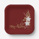Trendy White Poinsettia Burgundy Gold Glitter Paper Plate