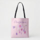This trendy tote bag is in the style of Boho, one of the hottest styles of 2017. Personalise it by swapping the existing name for your own! The design features a decorative, pencil drawn arrow with flowers on it, with beads and feathers dangling from it on a light pink background.