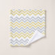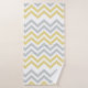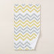 A modern and trendy chevron bath towel set with yellow and gray zigzag lines on white.