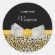 Trendy Yellow Cheetah Print Fancy Bow Party Name Classic Round Sticker