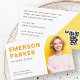 Trendy, yellow and white, business cards with your photo on the front along with name, title and a custom slogan or other text. Add your contact information and other info to the back and customise the QR code. Background and font colours can be customised in the design tool.