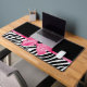 A trendy black and white zebra print desk mat decorated with a picture of a chic hot pink ribbon tied into a girly bow. Personalise this fashionable pink and black animal print design by adding the name of your favourite girl. Flat printed image, NOT an actual bow.