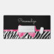 Trendy Zebra Print Chic Hot Pink Bow and Name Desk Mat