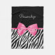 Trendy Zebra Print Chic Hot Pink Bow and Name Fleece Blanket