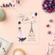 Celebrate in true Parisian style with this acrylic 'Très Chic Sweet 16' birthday invitation. Featuring an elegant illustration of a fashionable girl in a flowing gown, the Eiffel Tower, balloons, and confetti, this design blends glamour with a playful French twist. The stylish blush pink, black, and white colour palette makes this invitation perfect for a Paris-themed birthday party that’s as fashionable as it is fun. Personalise with your event details for a truly unforgettable soirée. Search ID1162 to see other coordinating products in this design set. NOTE: design includes some generative content.