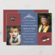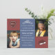 Show your pride in your child's accomplishment with this wonderful two-photo graduation invitation or announcement. The design features an emblem for an MBA or a monogram, cap and diploma and a lovely scroll above the wording against a red and blue background.