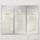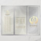 Yoga Studio Meditation Instructor / Life Coach / Healer / Reiki Master / Massage Therapy Tri-Fold Brochures Template - Elegant Calligraphy Faux Gold Foil Yoga Meditation Easy Pose / Sukhasana Pose with ZEN Symbol on OM Symbol Silver Floral Damask Paper Background.