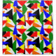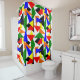 This shower curtain has a Bauhaus design of a collage of triangles in red, yellow, orange, blue, and green.