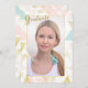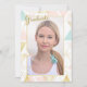 A modern photo invitation with triangle shapes in teal, gold, pink and white. (<a href='https://www.freepik.com/free-vector/wedding-invitation-card-template_3715120.htm'>Designed by Freepik</a>). <br/><br/>The card is easy to customise with your wording, font, font colour and choice of six paper types.<br/><br/>Not exactly what you're looking for? All our products can be custom designed to meet your needs at no extra charge.<br/><br/>Simply contact us at askcottonlamb@gmail.com<br/><br/>Coordinating products available: