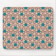 This mouse pad has a geometric design of repeating brown and tan triangles with turquoise circles on top on a field of off-white. Want the same design in different colours? Message me.