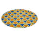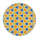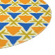 Blue and orange triangles and golden stars on a pale yellow background, abstract geometric pattern.