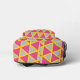 Abstract design of triangles of grey & yellow on mauve pink background.