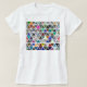 An attractive colourful patchwork design made up of triangles with different patterns and textures.