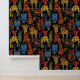 Ethnic, tribal wallpaper with giraffes, masks and other safari animals
