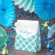 Bright tribal angular key style blue green teal on white thank you gift boxes. Ideal for wedding, celebrations and birthday favours. Designed by Sarah Trett.