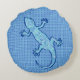 Gecko patterned with a tribal batik textile design - light chambray blue with shades of denim blue and white, outlined in indigo