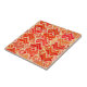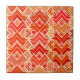 Ceramic tile in in an African inspired contemporary take on a tribal textile print, rendered in a batik dyed texture - shades of deep mandarin / tangerine orange and light citrus orange, accented with white and soft gold