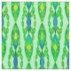 Tribal-inspired batik fabric print - shades of emerald green, cobalt blue and lime on a pale mint green background