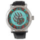This is a Unique "One of a Kind" Tribal Bear Paw Watch! It Features a Southwest Tribal Bear Paw on a Turquoise Background...Surrounded by a Turquoise, Orange and Black Border!