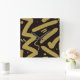 Wonderful abstract black and gold designed wall clock with a tribal accent.