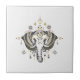 Cute tribal elephant illustration using gold and grey tones on a white background.