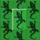 a decorative pattern design of abstract tribal style geckos, lizards or dragons on green fabric