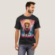 I give wanted to give this a 4 instead of a 5 because these Basic DARK T0shirts run unexpectedly SLIM or Narrow. Which is great if you do not have a potbelly, but I have a paunch. It isn't the shirt's fault that I've got a beer belly. The design and shirt itself is a quality cotton shirt. The color is more of a deep purple, but still a very pretty color. The Basic DARK T-shirts run a bit SLIMMER than the Basic Ts. The neck is a fraction narrower (or seems to be narrower) also. I'm a paunchy middle-aged woman and my neck is 12 inches (31cm) thick and the neckline fell about the same as in the photo of the man, and I had the desire to tug it a bit. So if you're a thick necked man or like loose shirts, be aware these are slimmer shirts. Once I get rid of my lockdown paunch it'll look great. The shirt washed well in cold water with no apparent bleeding. We don't have a dryer, so it hung dry. Did not shrink. Love the colors and the design. The design looks smaller on my shirt than it does on the model on-line. But still, it looks good on the shirt. The printing looks as it does on the model, just the size seems fractionally smaller. Washed garment in cold water, hung dry and design appeared unaffected.