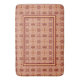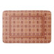 This large bath mat features a geometric tribal pattern. The colours are maroon, peach and mauve. This pattern is based on a tile pattern. Size: Large Bath Mat